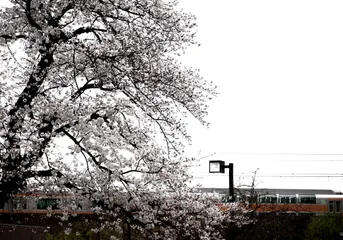 桜と 昨日の朝、 多少雨が降っていたものの、お写ん歩。 近くの桜が満開でした(^-^) ちなみに、一緒に写っているのは中央線です!(^^)! この陽気だと、満開になる桜がまちまちになってしまいそうですね((+_+)) 少し重たい写真になって