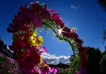人気スポット コスモス寺とも言われる奈良の般若寺では色んなコスモスで楽しませています。中でも女性に最も人気があるスポット。無理に割り込みさせて頂いて撮影