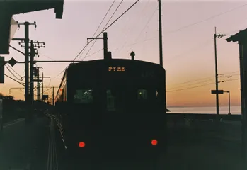 予讃線箕浦駅夕刻日没時撮影NikonFレンズ50mmf6SS125富士カラーフィルムISO100