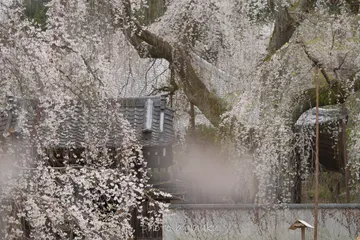 たくさんのしだれ桜が滝のよう