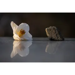 落花 公園の大理石のテーブルの上に、落ちた椿の花と石が置かれていました。