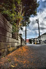 舗装道路に散った金木犀。絵になりにくいと思い込んでいたのですが、ドラマチックな空との対比が絶妙で、見事に絵になっているなあと感服いたしました。とても勉強になりました。