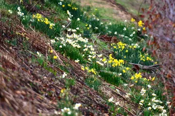 野生の水仙 淡路島の農村で土手に咲く野生の水仙を見つけました。白も黄色も咲きたい場所で咲いているのが、いかにも自然らしいですね。何事もあるがままが一番美しいですね。