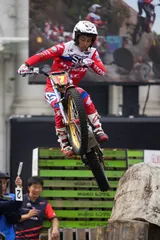 パフォーマンス 難しいセクションを見事に通過した選手が感激を表現。