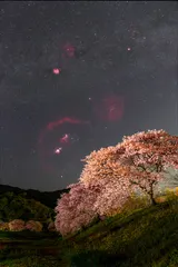 満開の河津桜と冬~夏の星々の共演
