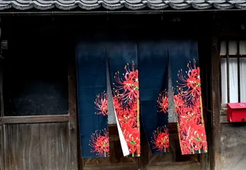 彼岸花の、暖簾。このお店のオーナーのセンスが光ますね。そんな光景の切り取り、素敵なスナップです。^^