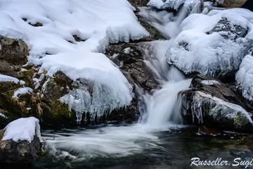 凍てつく東北の川でも豊かな水は止まることなく流れていた。流れてきては飛沫などが凍り、日差し等で溶けてまた凍りという果てのない繰り返しを太古から行っている。