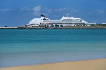 三井オーシャンフジ 石垣島の岸壁に停泊中の三井オーシャンフジです。手前の浜のブルーが綺麗でしたが出ているでしょうか?