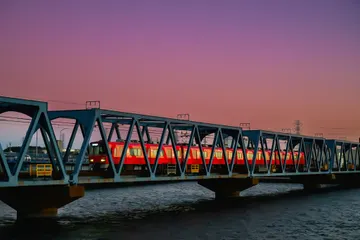 夕暮れの中の赤い列車 車両いっぱいに夕日を浴びた赤い列車を撮りたくて出かけました。