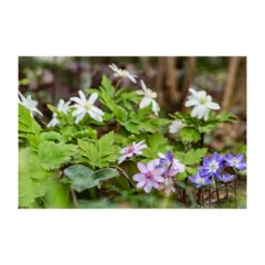 雪割草 地植えの雪割草の奥は白花キクザキイチゲです。蕾でまだ咲きません。