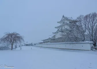 城 雪が降り続く中を傘さしながら、片手でカメラを持って撮影はむずかしかった…