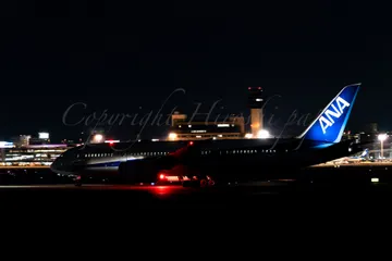 ランディングライト:赤と白夜の空港(飛行機)撮影は難しい・・・