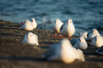 冬になると毎年愛知県蒲郡市の三河湾に飛来するユリカモメの画像です。午後のまったりしているところを撮りました。