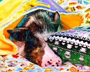 パラレルワールド(Zzz…) ミニブタのピーちゃん。スヤスヤ夢心地。