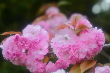 八重の咲く公園 私も八重桜を撮影してみました。今春、最後の艶やかな姿ですね。