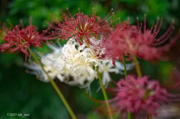彼岸の余韻 ~静寂の祈り~ おそらく今年最後の撮影となる曼珠沙華。今日のタイトルは「彼岸の余韻」としました。 ご先祖様の想いを偲び、そこに咲く彼岸花が紅白に彩るその様子を見ると、なにか先人たちからお祝いされているような気分に。。 天に向かって伸びる蕊(しべ)は、手を合わせて祈りをささげているように見えました