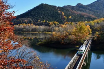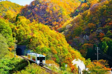 私も紅葉の時期に鳴子峡を訪れたことがあります。トンネルから突然飛び出してくるのかなと心配していたら、乗客にゆっくり楽しんでもらおうと徐行してくれて安心して撮れました。早い復興を祈念しております。