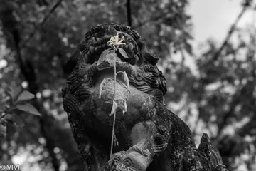 一凛 狛犬の前に一凛の花。香りを感じている?美味しそうって思っている?あなたはどう感じますか?写真って最後は観る人次第ですよね。