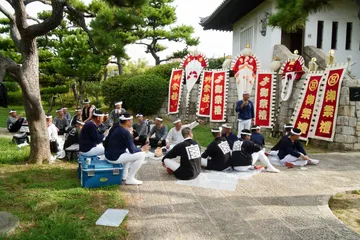出番前 だんじりが宮入するのに、宮入用の衣替えの準備です。 こういうことは、外部の者ではなかなかわかりません。 数年前にお世話になったプロカメラマンに教わりました。