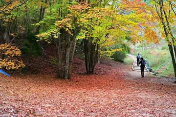 [秋色チャレンジ][錦秋の回廊] 森林植物園も広大な広場ですから、裏道はあまり人が通りません。その代わり落ち葉も奇麗に整い、絶好のハイキング道、おっと撮影場所になります。