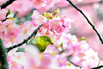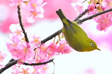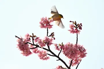 河津桜とメジロ