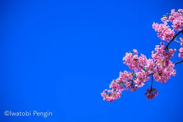 早春の彩りを添える河津桜 西伊豆の河津桜です。満開の時期を過ぎて、そろそろ葉っぱが出始めてましたが、青空とのコントラストがとても綺麗でした。 2枚目は中央に木々の間から除く日の光を入れて撮ってみました。 3枚目は、2枚目と同じように河津桜越しの木漏れ日の煌めきを入れています。 最後は青空バックで