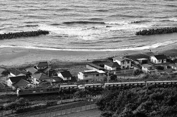 沿線寸景 海辺の集落 撮影地 羽越線西目付近にて(機関車はレッドサンダー)