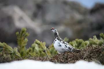 冬季限定で登れる焼岳南峰頂上で雷鳥に遭遇。真っ白な冬毛から生え変わっていく途中です。 camera Z6IIIlens NIKKOR Z400mm f/4.5s