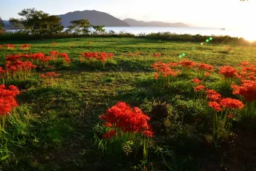 湖畔の赤 高島市今津の琵琶湖湖畔での彼岸花です。