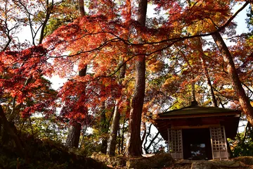 秋色の観音堂 お堂を囲む紅葉、午後の半逆光となりました。松島町にて