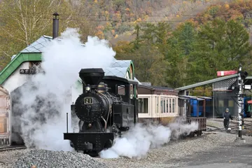 北の豆汽車(5枚組写真) 北海道の遠軽町にある丸瀬布森林公園内で走る、北海道遺産 森林鉄道蒸気機関車 雨宮21号です。例年、4月末~10月中旬の週末を中心に日中30分間隔でお客さんを乗せて周回。なお、今季の運行は終了しておりますのでご注意ください。