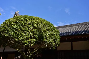 金木犀チャレンジ9 沙羅の花で有名な有馬の念仏寺に何十年ぶりかでお邪魔しました。なんと寺の屋根に掛かろうかという金木犀の大樹があるではないですか。花は前日の強風で飛んでいましたが、このような大きな木は神戸で最大だと思います。