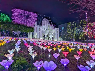あしかがフラワーパークにて。イルミネーションで輝くお城と花がとても綺麗だったのですが、ずっと撮っていると目がチカチカしました💦