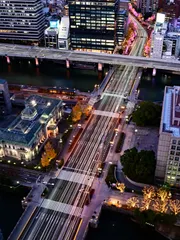 奥に見えるイルミネーションや車のヘッドライトが眩いです。 俯瞰しているのが迫力がありますね(^-^) 私も夜景を撮りたくなりました(^^)/