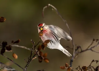 ハイジャンプ ベニヒワがえさをとる為、飛び回っていました