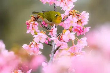 サクジロー 梅ジローに続いて「早咲きの花」ハッシュタグに合わせて河津桜とメジロを アイキャッチは綺麗なグリーン背景に二枚目は木々の木漏れ日を背景に どちらがいいのか?本当は飛翔の一瞬を撮ってみたいのですが初心者すぎてスキルが足りません。