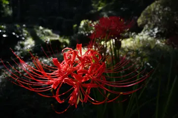 彼岸花 こちらも過去作ですが。 さいたま市大宮公園内にある日本庭園で撮影。群生ではありませんが。 21mmレンズで撮影です。 陽の当たる場所の花をアップに、背景に日影の花を添えてみました。