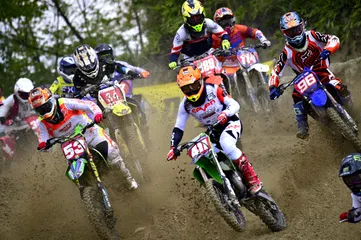 デッドヒート スタート直後のダンロップヒルズを下るライダーたち。