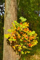 小さな秋 親木に抱かれているような小さな紅葉