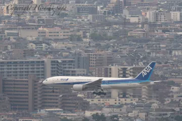 伊丹空港逆風運用、最終アプローチ。ANA B777 ANA B777の着陸に向けた最終アプローチ。伊丹空港の逆風運用時にのみ見る事ができるシーン