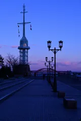 神戸ハーバ-ランドの夕景時灯台が印象的で撮影。12月で寒い感じも込めて。