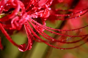 雨の日の彼岸花 Nikon Z9 NIKKOR 60mm f/2.8G1/2000秒 f/9 ISO640 雨上がりの彼岸花の水滴が印象的でした。