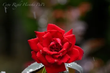 雫 奈良霊山寺のバラ園雨中の撮影は機材保護に気を使うが、そんな事は言っていられない良い情景