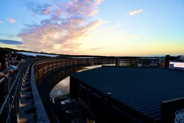 広大なスクリーン 大阪・関西万博の会場にて。大屋根リング上は夕焼けショーを鑑賞するにはとっても贅沢な場所かもしれない。 29 September 2025