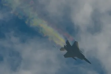 彩雲? 岐阜基地訓練飛行中のイーグルくそ、逆光かよ!と思った瞬間の「ハッ!」とした光景