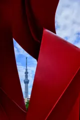 赤いオブジェ ~秋の雲とツリーをオブジェに閉じ込めてみました~