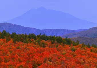 錦秋の城ヶ倉大橋から見た津軽富士岩木山(十和田八幡平国立公園内)