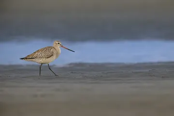 オオソリハシシギ 干潟が現れるとあちこちに小川のような流れができる。ちょうど背景になる位置にオオソリハシシギが歩いてきてくれた。