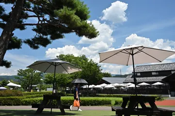 避暑地 川場村の田園プラーザ。 避暑地にマイカーで行く人達のランチひと休みの所。猛暑すぎるのか、避暑地にしては空いているなと感じた。
