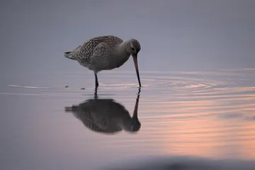 オオソリハシシギ オオソリハシシギ朝焼けが水面に映る波紋が主題を引き立てた。